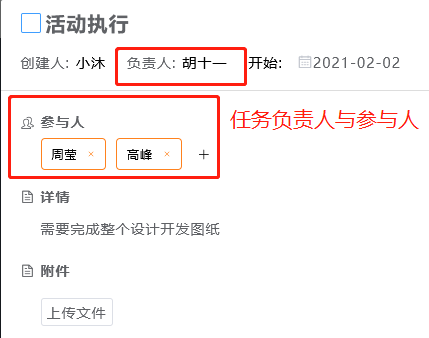 - 任务参与人:任务的查看权限,可以添加评论。