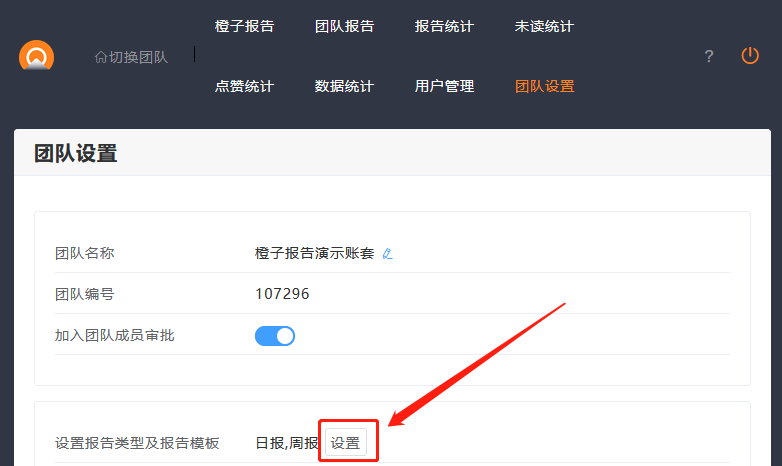 1.管理员在团队设置中,设置报告模板
