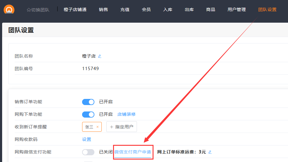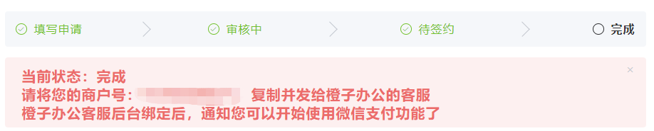 2.橙子办公客服在后台将你的会员通团队与商户后,进行绑定,通知您可以开始使用微信支付功能了