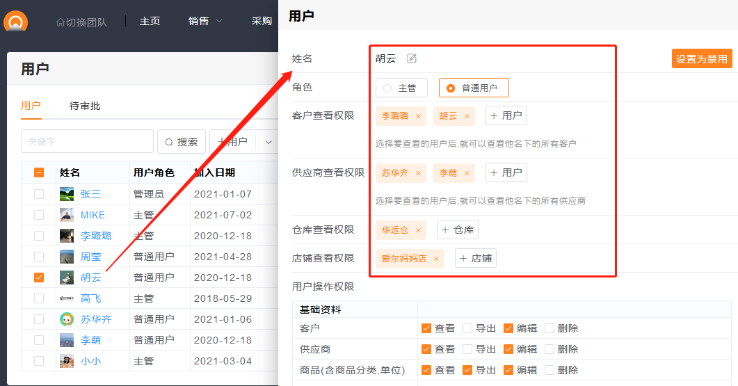 操作如下:管理员在系统设置-用户设置中,点击用户姓名,设置对应权限。