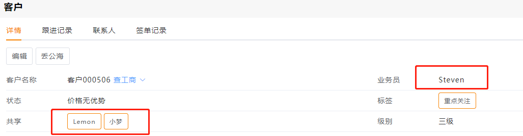 创建人:系统记录的创建客户人员,无权限不可查看客户。