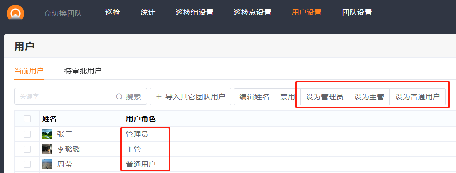 巡检无忧的用户角色分为三个:管理员、主管、普通用户。