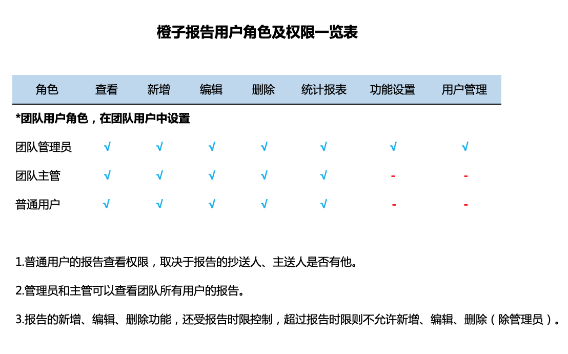 为了适应报告对数据的管理更加细致的区分,我们设置了各种角色,他们的权限如下: