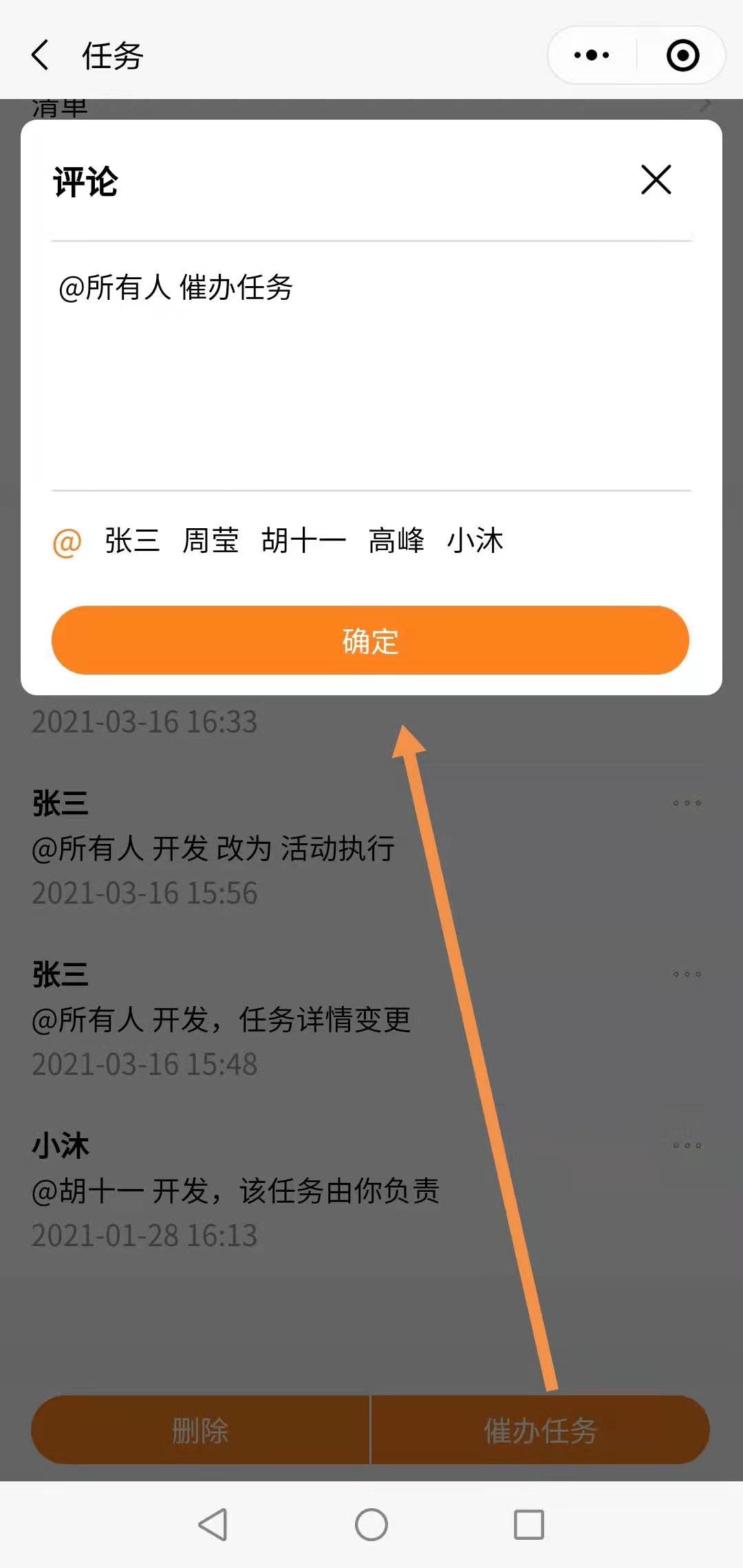催办任务时,任务所有成员会收到推送。
