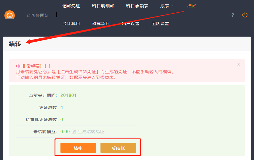 每个帐期做完了,记住做结帐,如果有帐面错误,可以进行反结帐。