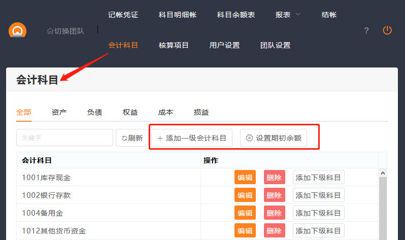在开始做帐之前,我们需要先设置好帐目需要的会计科目。