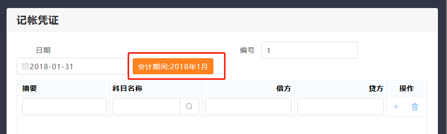 可以看到,当我选择开帐期间为“2018年1月”,那么进入系统新增凭证,默认就是2018年1月的帐期。