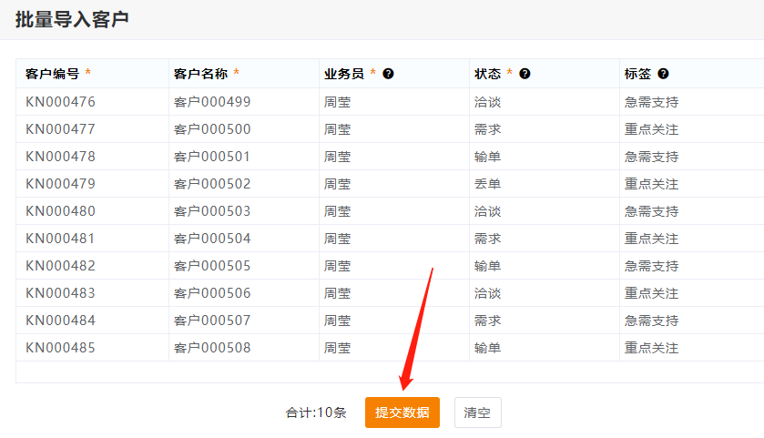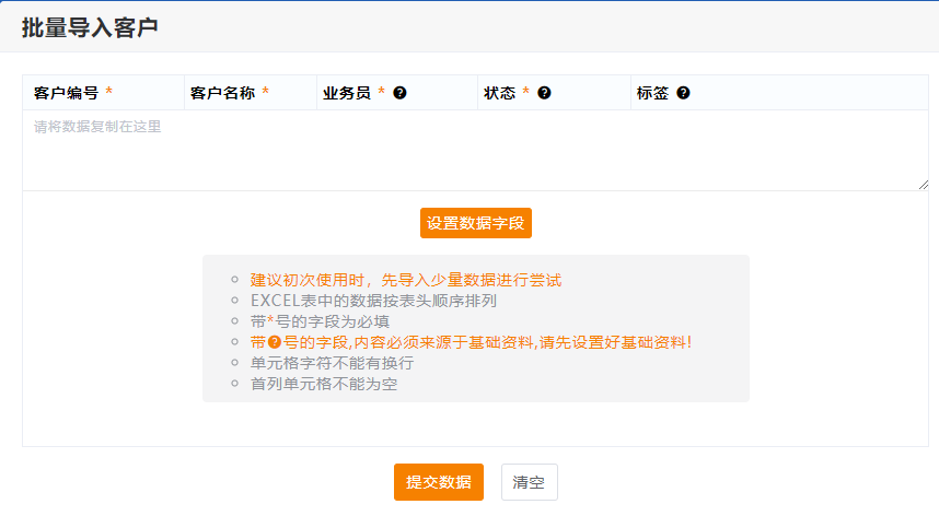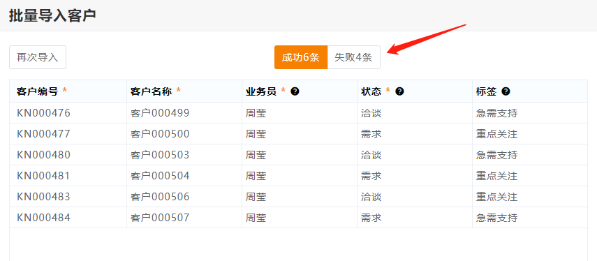 注意:此处不仅可以批量导入客户,还可以批量更新已导入的客户资料。