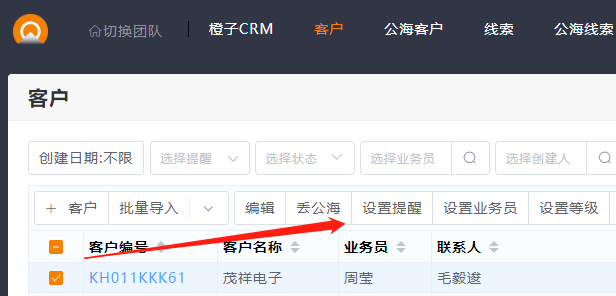 1.在客户列表选择客户设置提醒。