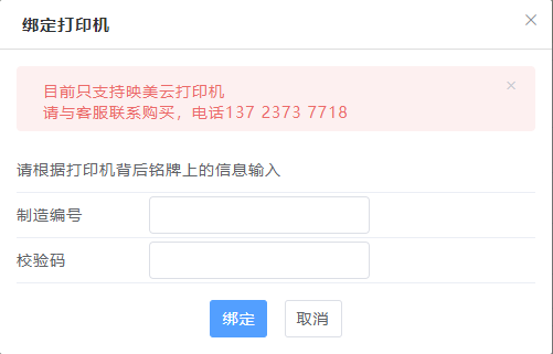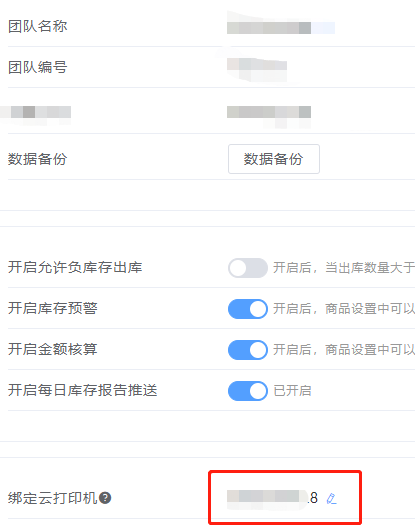 在团队设置页面,找到绑定云打印机,点编辑图标,然后根据打印机背后铭牌上的信息输入下面的信息,最后点击绑定