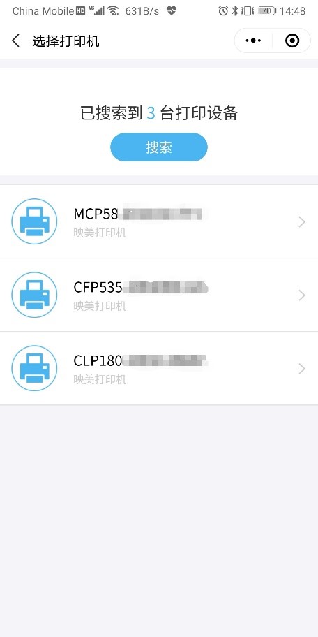 1、打开打印机电源,打开手机蓝牙,确保打印机和手机在同一wifi范围内并且手机已经连接wifi。然后用微信扫描打印机上的二维码进入映美打印机设置助手,点击“一键联网”会自动搜索到打印机