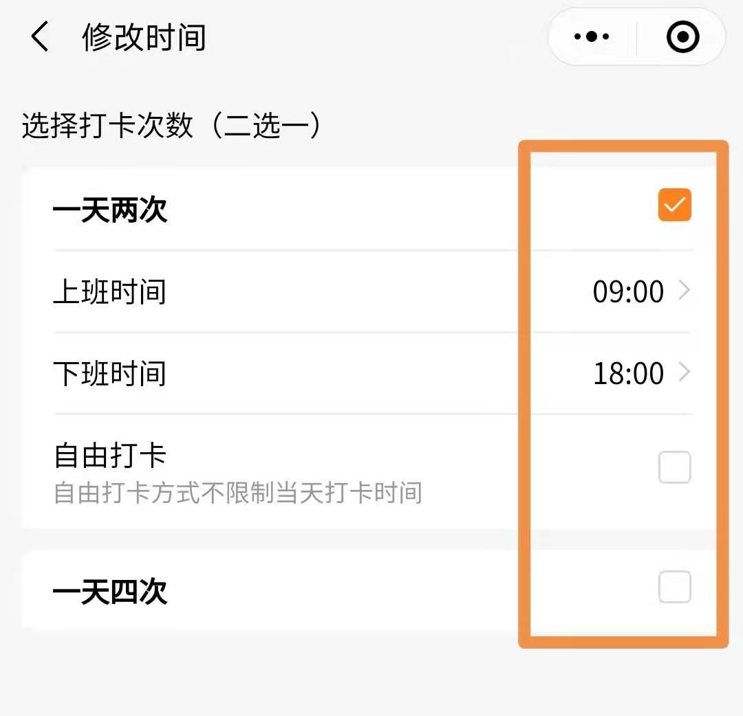 一天2次、一天4次,需要设置对应的打卡时间,会据此核算是否迟到早退等。