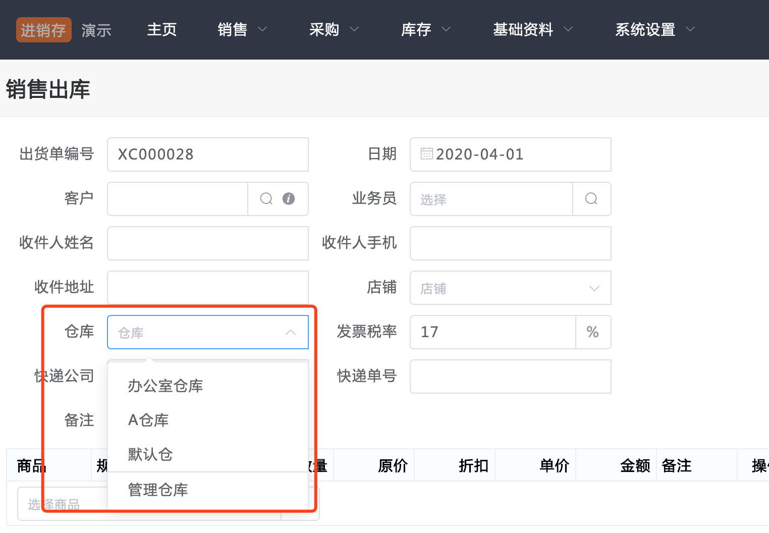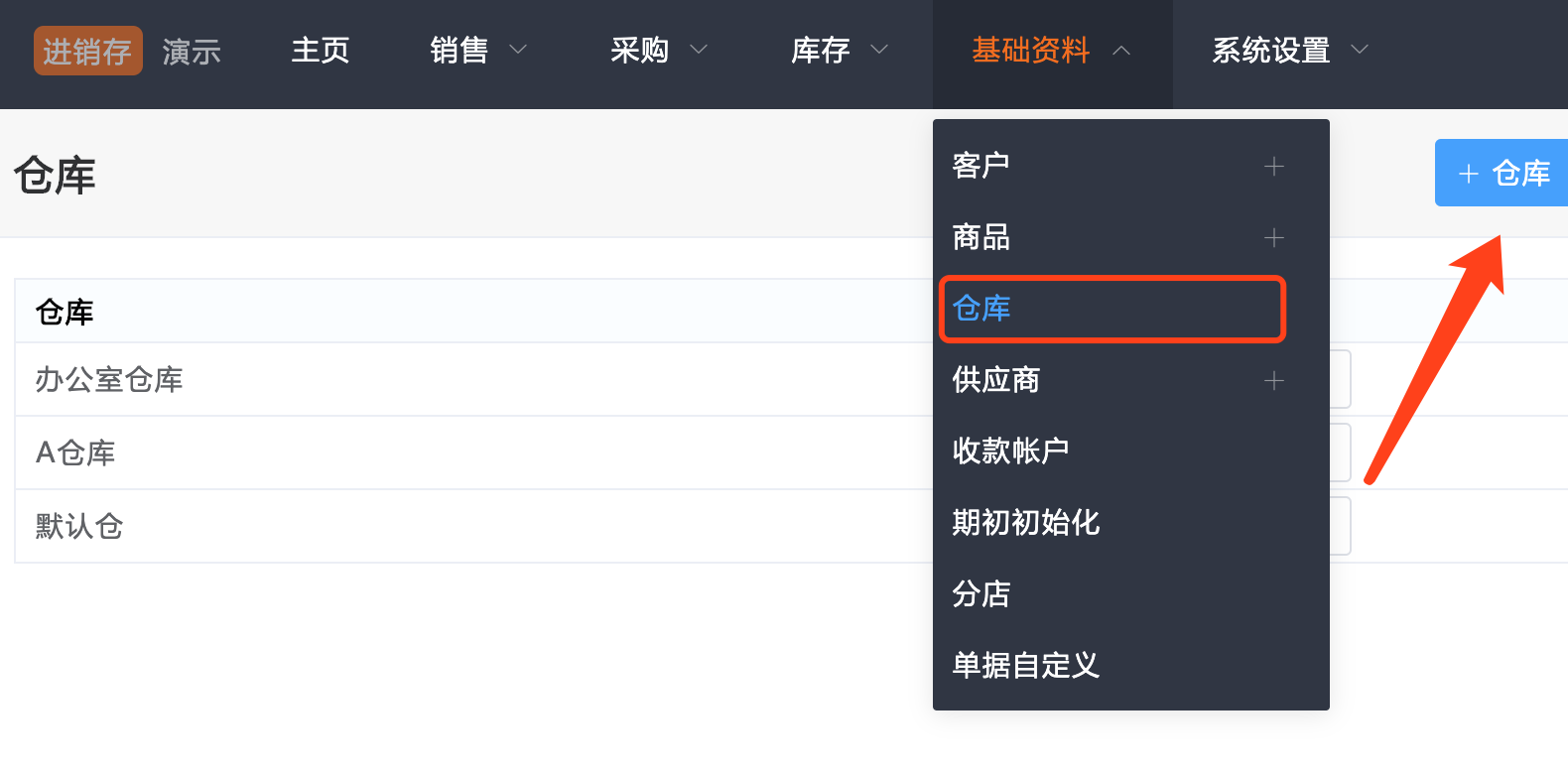 橙子进销存支持多仓库的管理。操作如下: