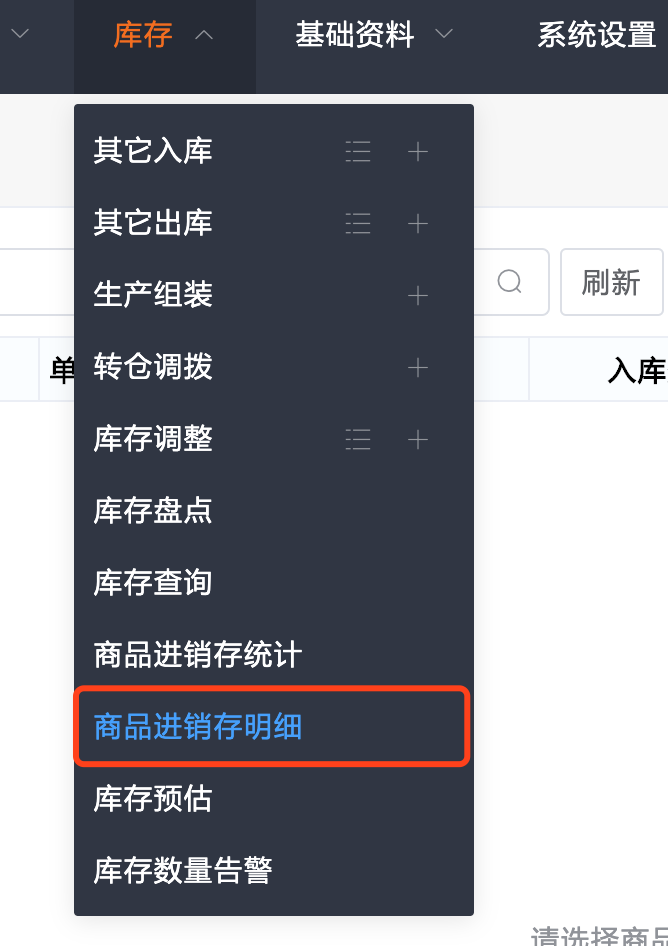 1.打开库存中的“商品进销存明细”