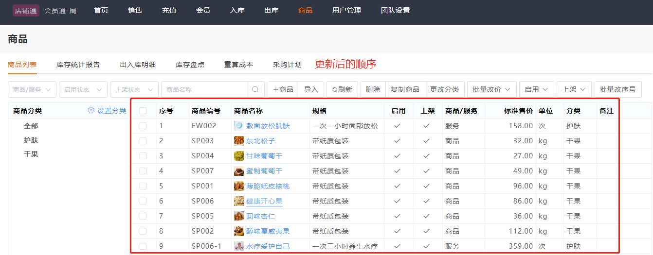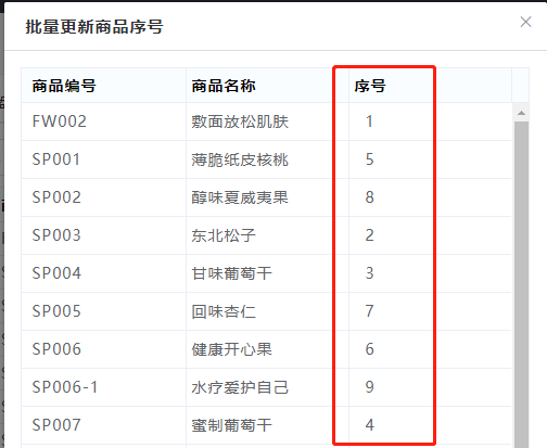 3.保存后,商品列表即更新为新的排序。
