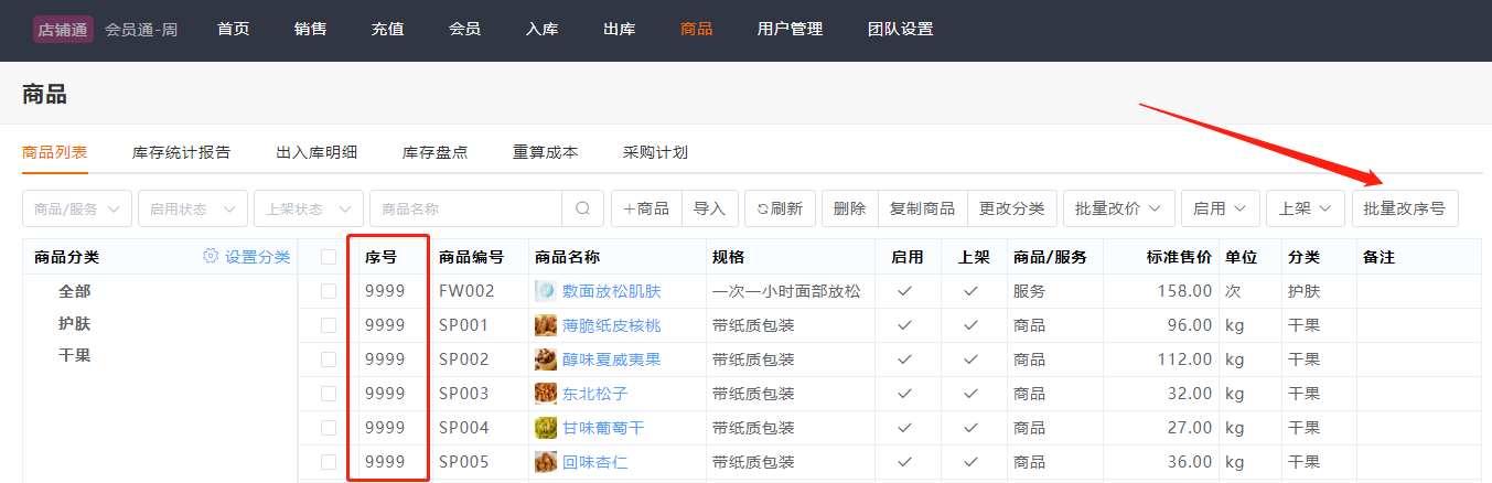 选择商品后,批量排序。