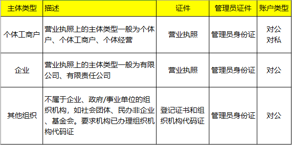 当前微信支付仅对以下主体类型开放: