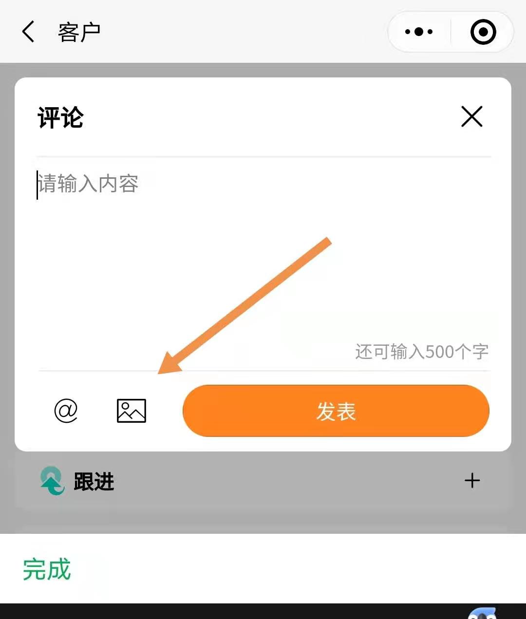 进入客户详情,点击最下方的评论框。