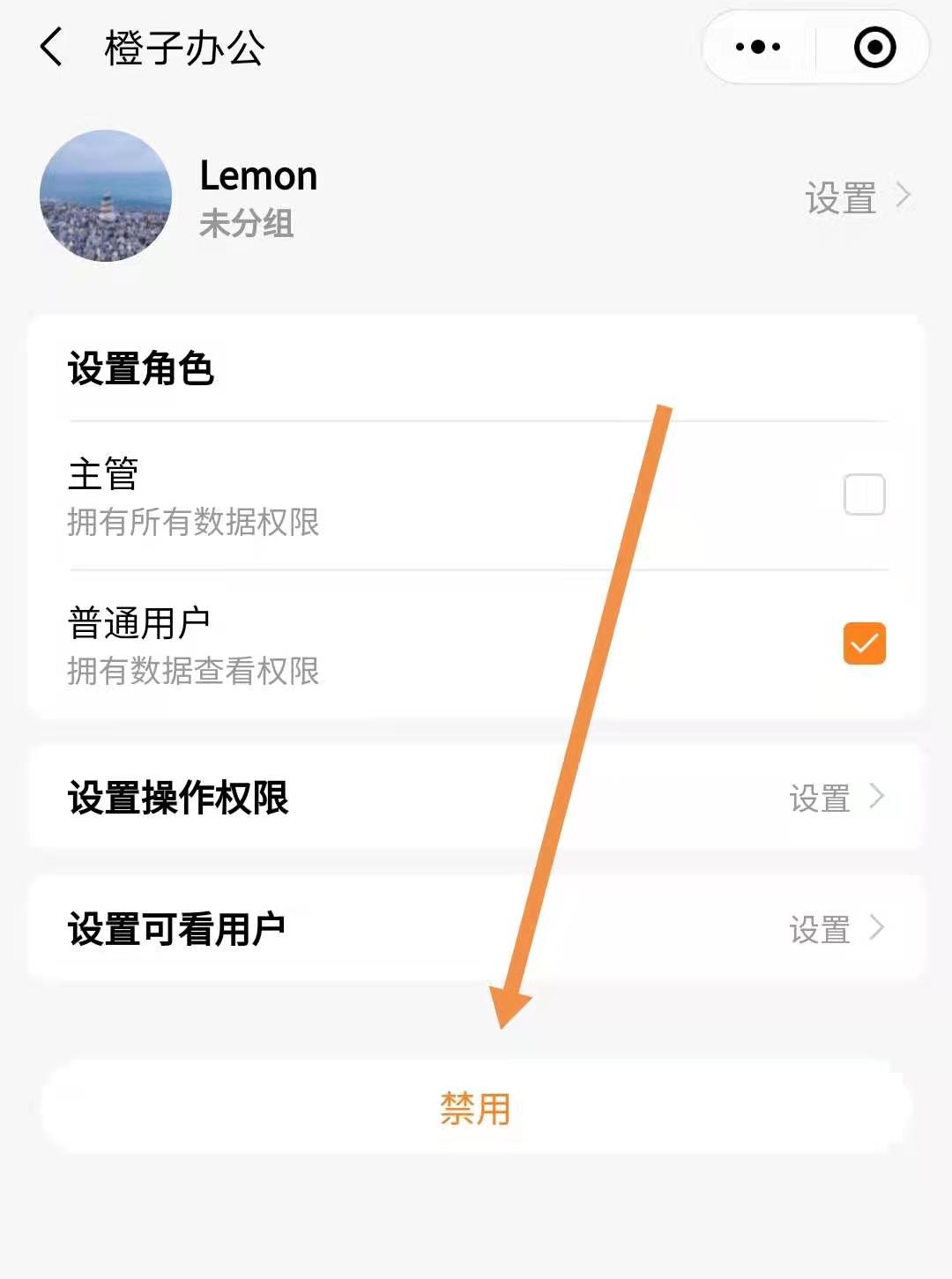 进入该成员设置界面时,可点击最下方禁用按钮。