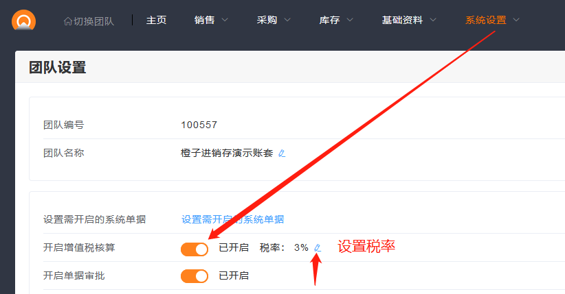 1.团队管理员在团队设置中开启,并设置对应的税率。