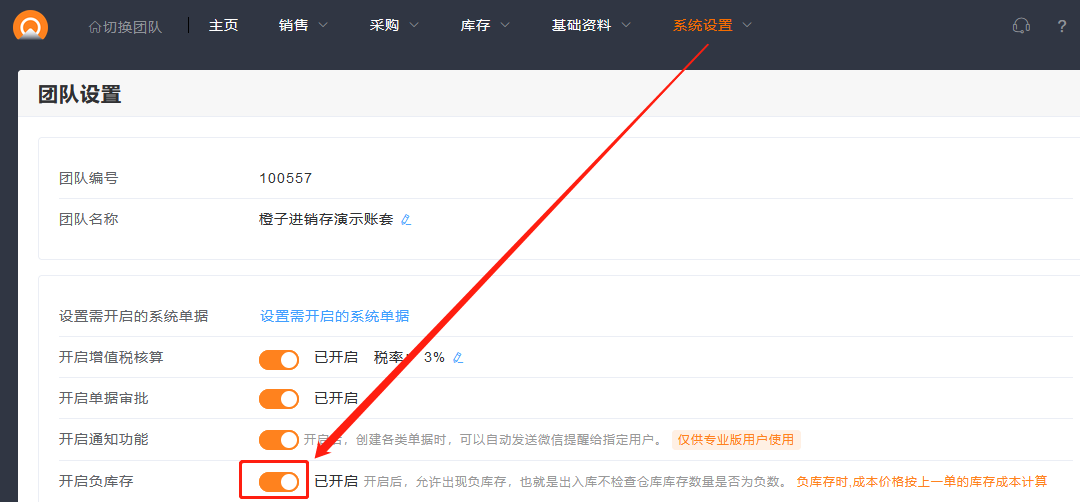 那么以上的情况,就无法做出库单。所以需要开启“负库存”功能