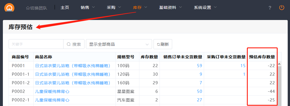 为了帮助以上情况更好的分析库存需求量, 我们提供了库存预估功能。库存预估功能的统计规则是: