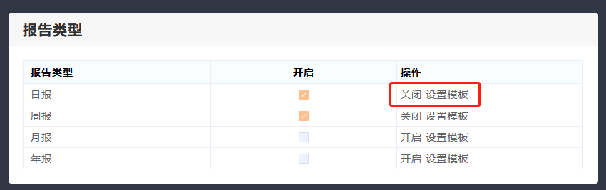 此功能可以按需设置需要使用的报告类型。未开启的类型,界面不会显示。