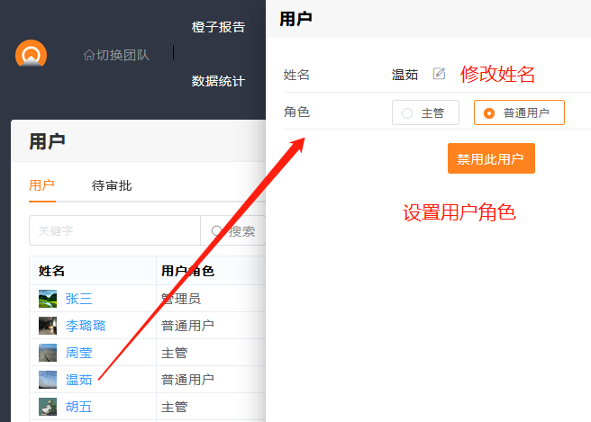 - 设为普通用户:仅可查看自己的报告+主送人/抄送人为自己的报告。