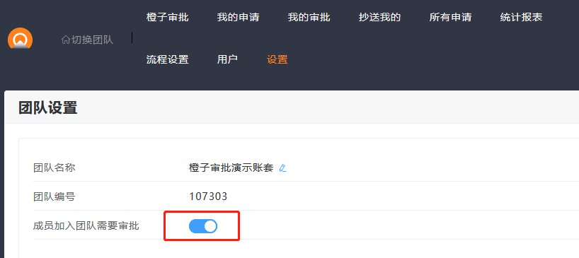加入团队成员是否需要审批,这个功能是橙子审批里独有的。