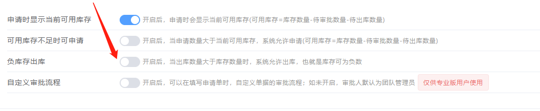允许负库存出库功能