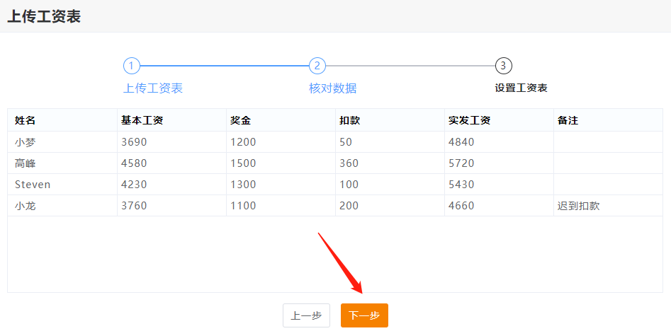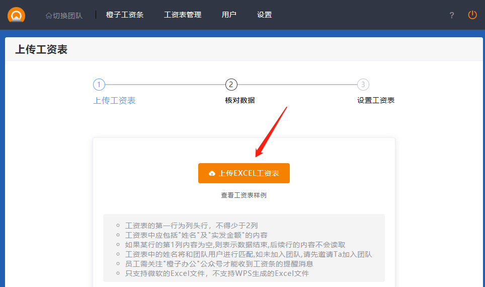 2.上传excel工资表,需要留意注意事项,保证工资表符合要求。