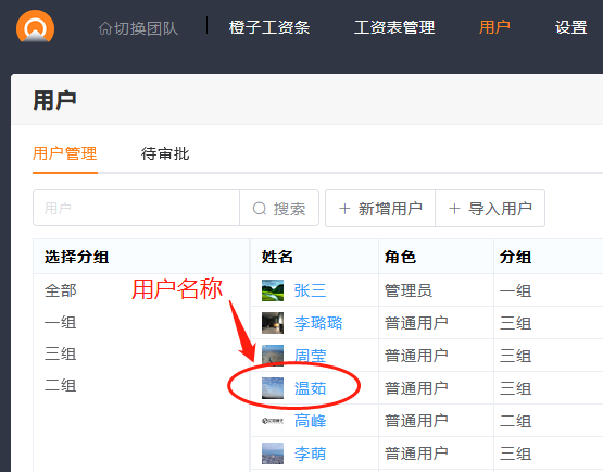 - 用户列表中,用户名称为:温茹
