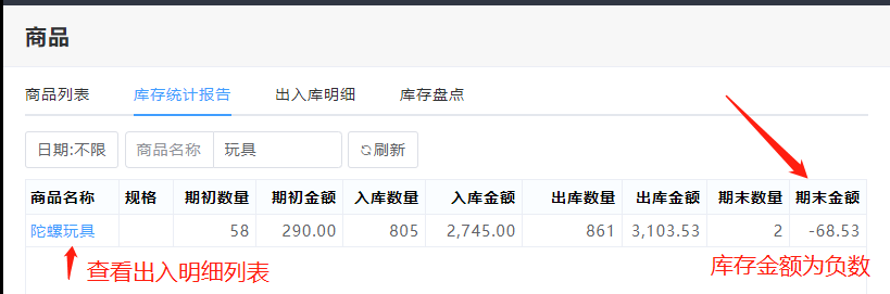 店铺通系统的成本,如果是负库存出库,将会出现库存统计时,数量为正,库存金额为负的情况