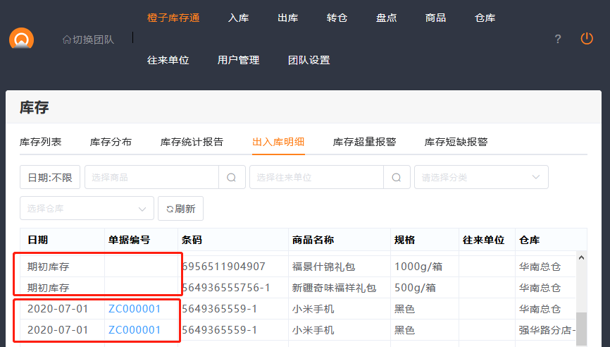 因此在使用库存通之前的仓库数据都是期初库存。