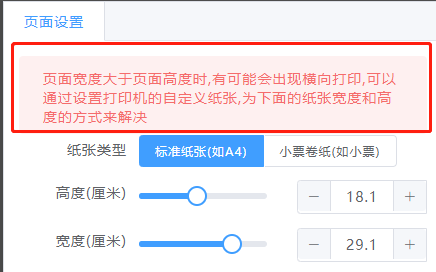 修改模板时,如果页面宽度大于高度时,可能会出现横向打印。