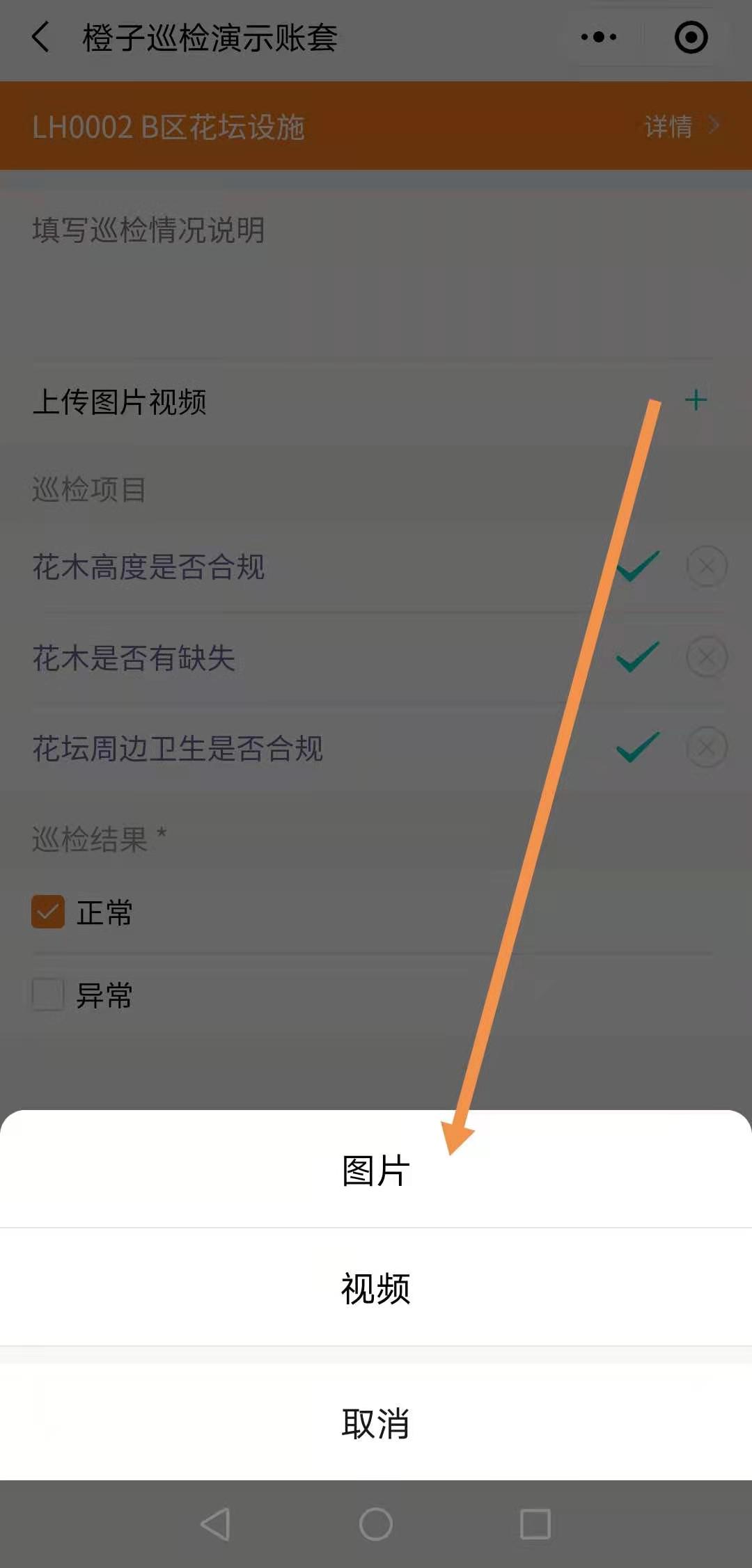 巡检记录中的上传照片和视频是直接到拍照录像环节,不可从相册中选择,最大程度避免异地提交巡检记录。