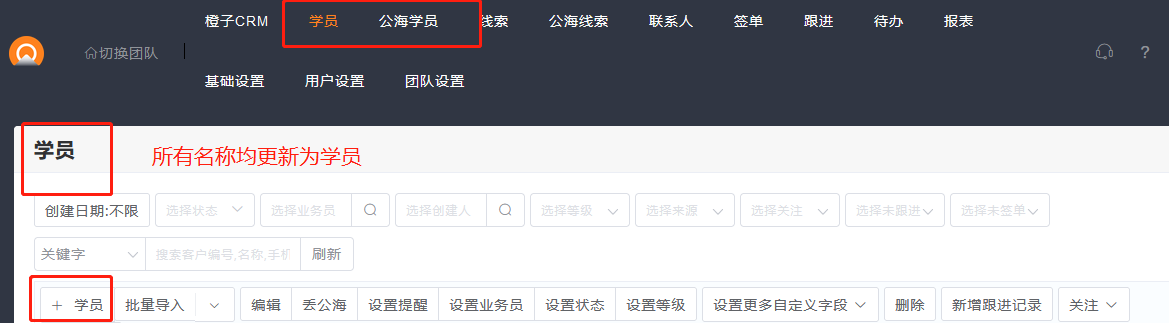 设置后,刷新界面,对应客户的地方,会更新为学员。