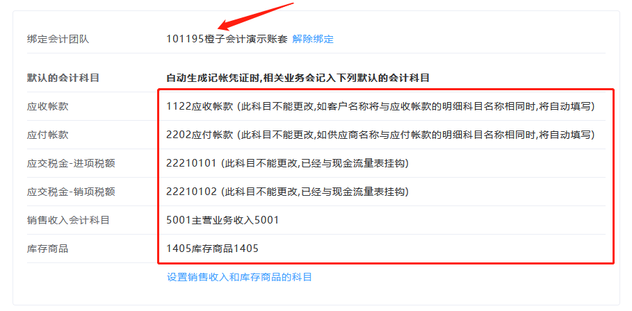 显示会计团队ID及团队名称,即表示已绑定。