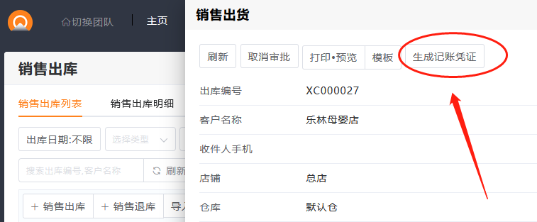 - 会计团队中,可以直接查看从进销存中生成的凭证数据。