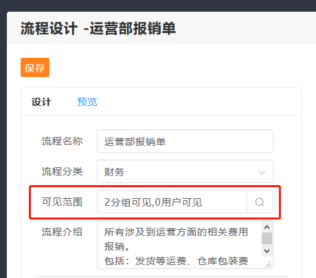 1.编辑流程表单,设置可见范围,保存。