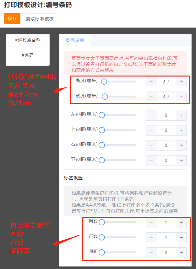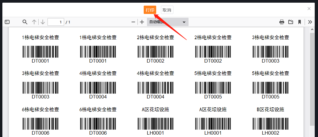 如何一张纸打印多个巡检点条码?