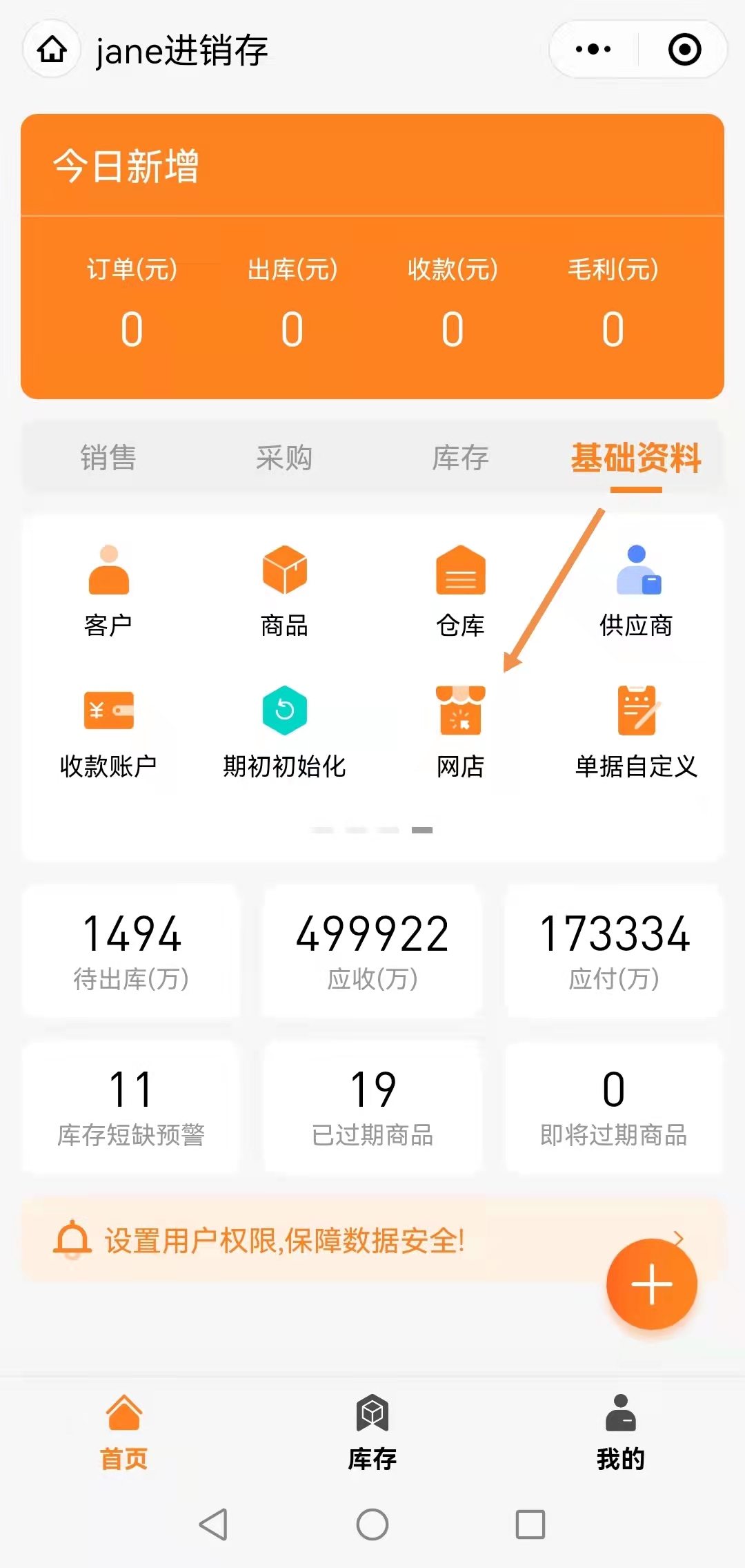 2.首页基础资料里,将会显示网店按钮,可以先进入设置网店轮播图及对应网店公告及其他相关功能等,再进入网店。