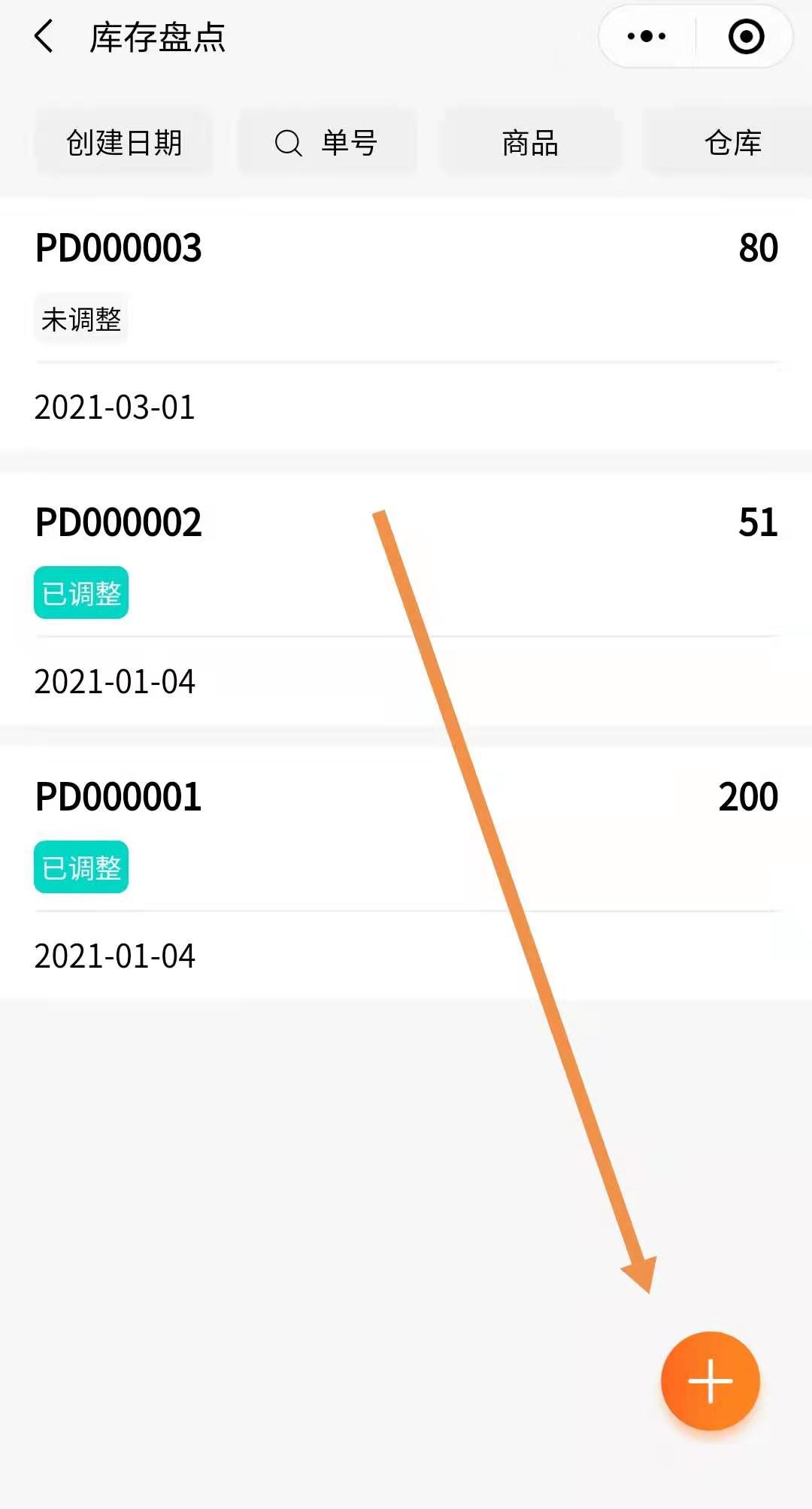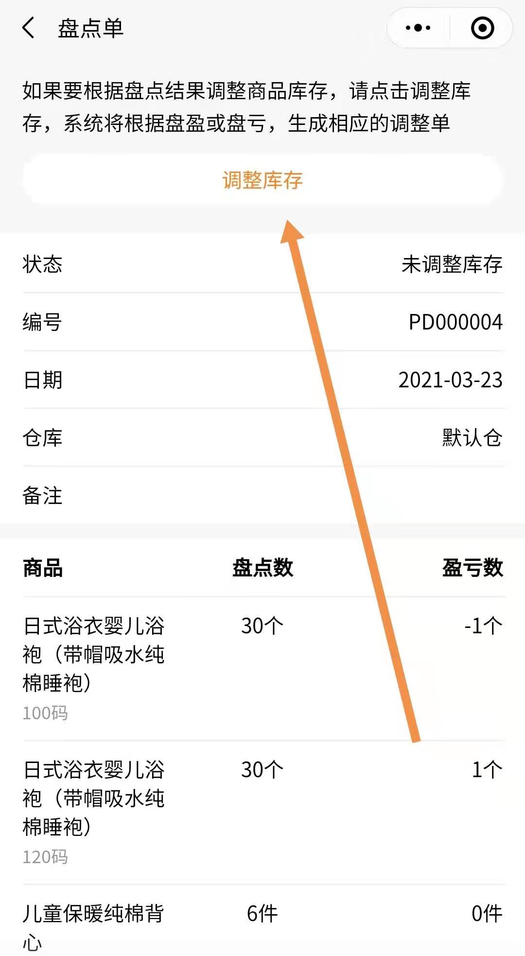对于不需要修改历史出入库单据,需要直接调整库存的盘点单,可直接点击调整库存,生成调整单。