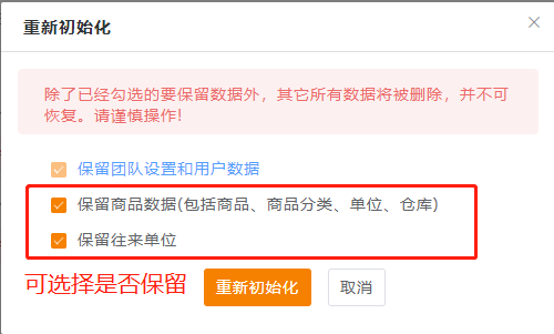 其中团队设置和用户数据,不受初始化影响,会保留。