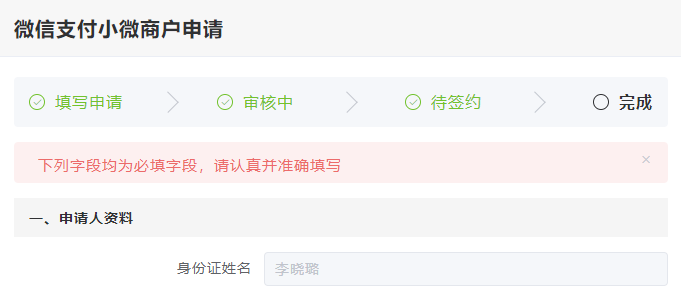 二、在微信支付小微商户申请页面,填写申请资料,然后提交审批
