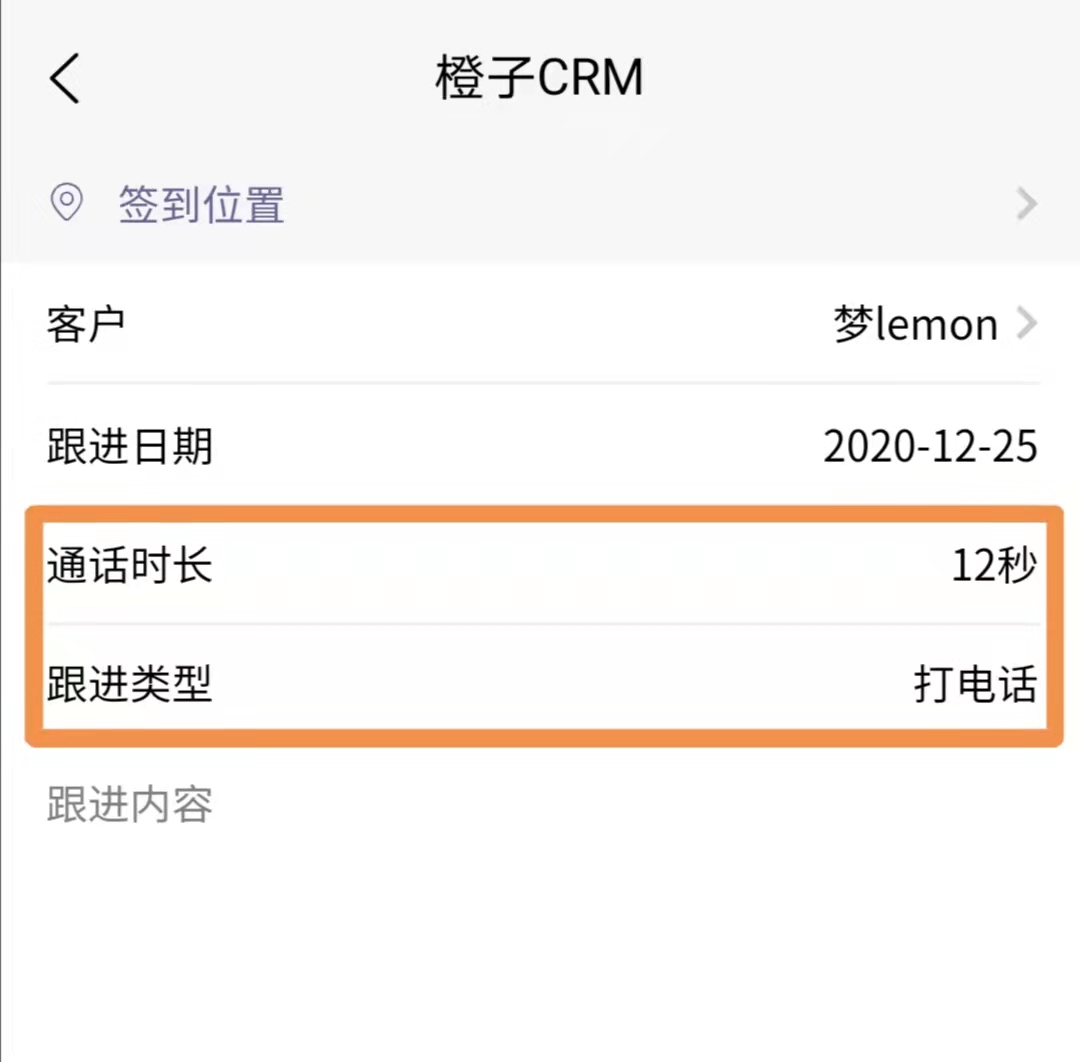 橙子CRM的APP版增加了特有的通话记录功能,此功能不限专业版,也不限用户,但是仅能在APP端使用。