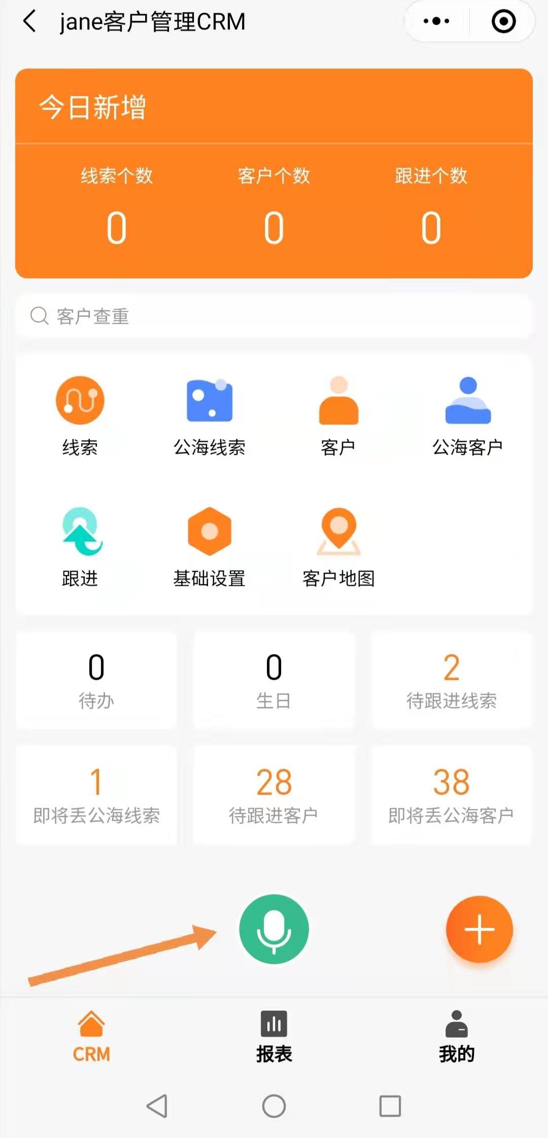 2.在橙子CRM首页,将显示语音按钮。