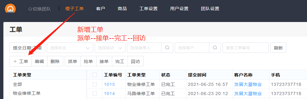 - 完成以上所有设置后,就可以开始使用【橙子工单】了。