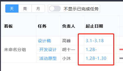 每个项目下可以设置多个任务,每个任务可以单独设置开始日期和截止日期: