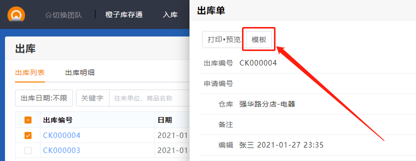 (打印模板设置仅限网页端操作:www.orange-office.cn,建议使用chrome谷歌浏览器)